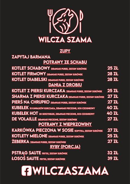Karta dań Wilczej Szamy obejmuje pozycje, które można dobrać według pory dnia i apetytu, w tym propozycje na przystawkę, danie główne oraz deser. Przy każdej pozycji liczy się przejrzystość opisu, aby goście mogli szybko porównać smaki i zdecydować o zamówieniu. Menu w tej formie pomaga zaplanować wspólny posiłek, także wtedy gdy wybór ma być sprawny i bez zbędnych pytań.